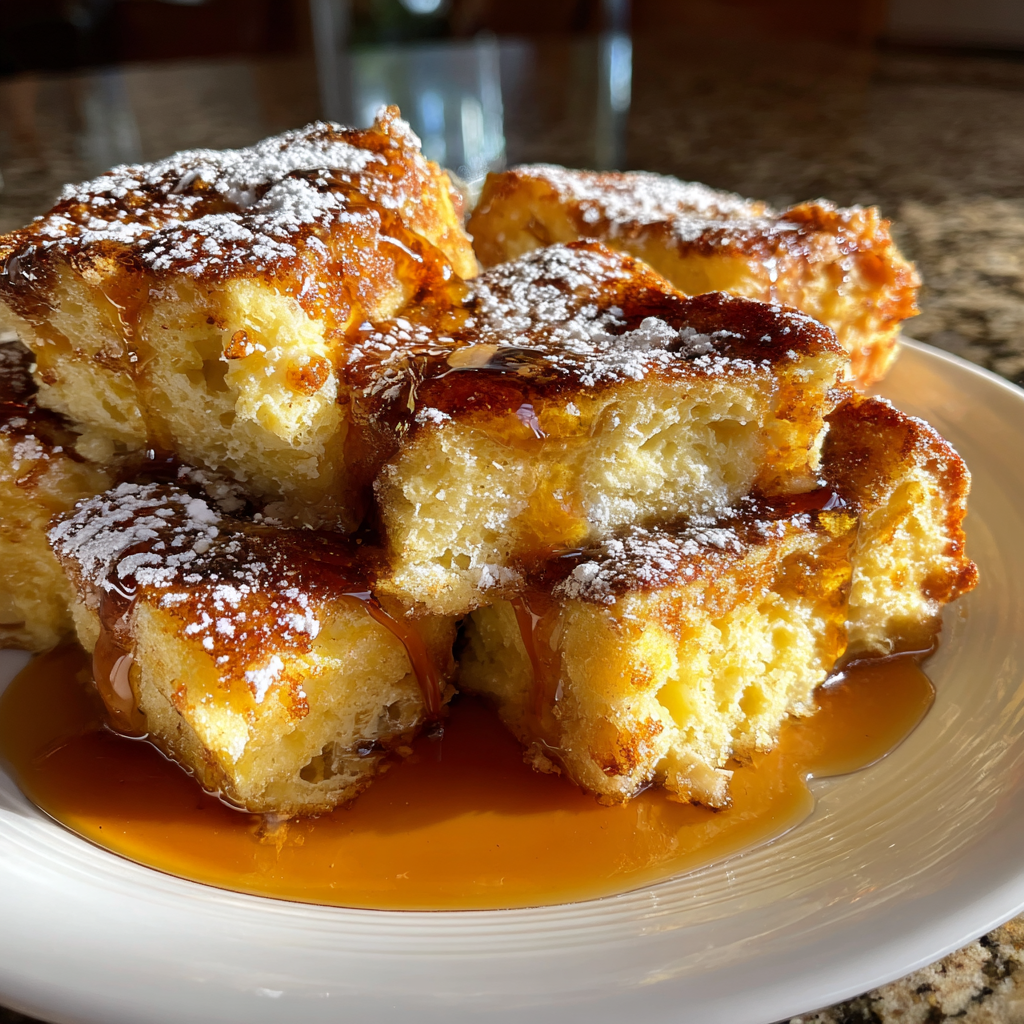 - French bread: Provides a fluffy texture that absorbs the custard mixture well.