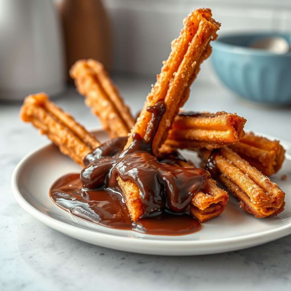 - Serve: Arrange the churros on a plate and serve warm with the chocolate dipping sauce on the side.