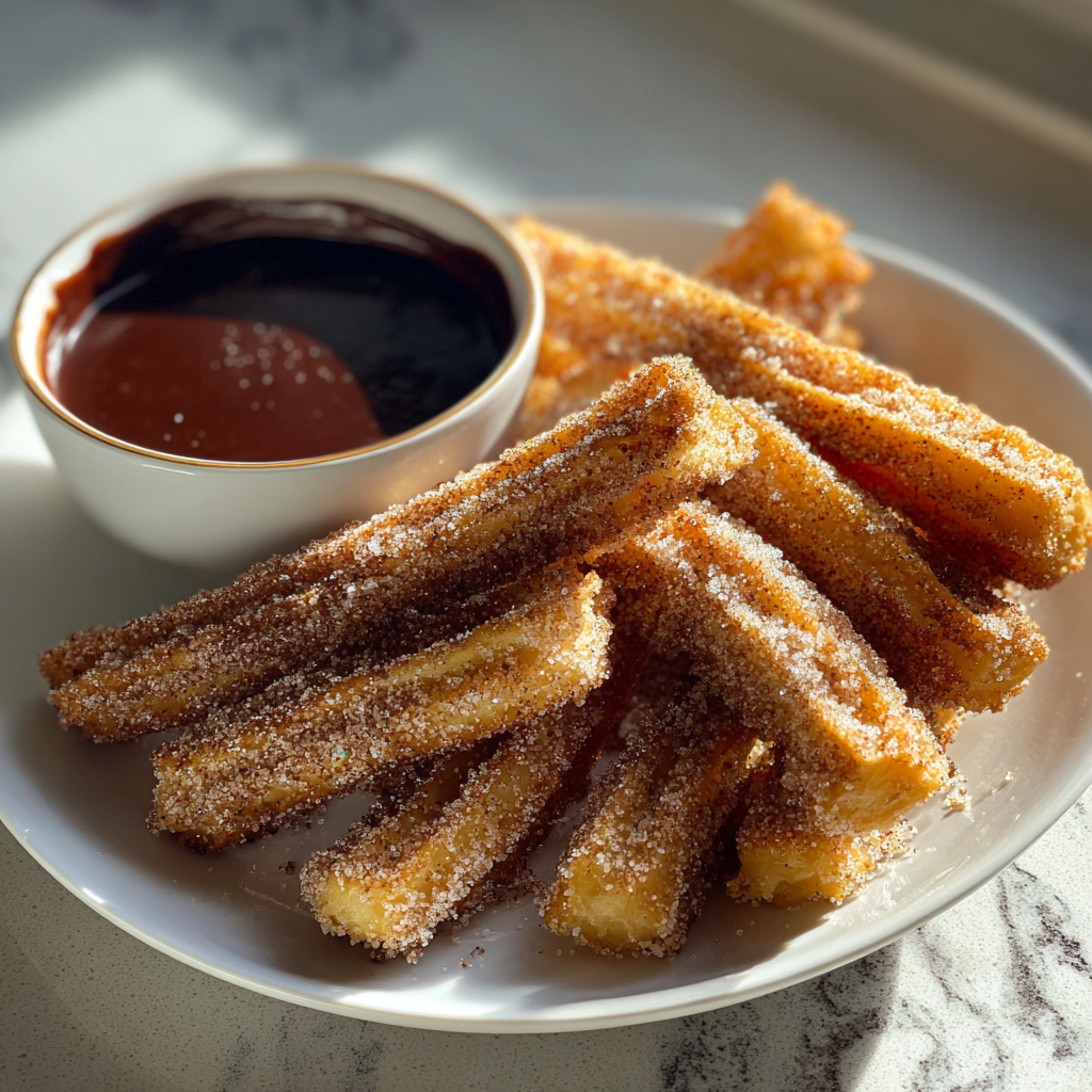 1. Churros: Start by mixing water, butter, sugar, and flour in a pot. Pipe the dough into hot oil and fry until golden brown. Roll in cinnamon sugar for the perfect finish.