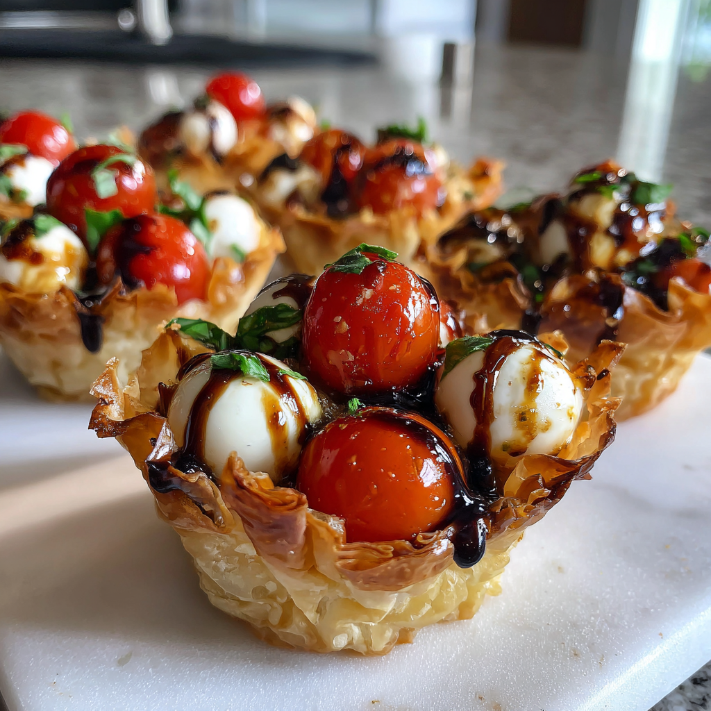 - Add mozzarella balls: Place one mozzarella ball on top of each phyllo cup, right next to the cherry tomato half, creating a visually appealing stack.