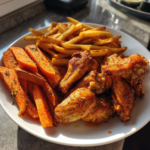 - Serve and Enjoy: Plate your crispy chicken wings, golden French fries, and sweet cinnamon sweet potatoes. Enjoy your restaurant-quality meal at home!