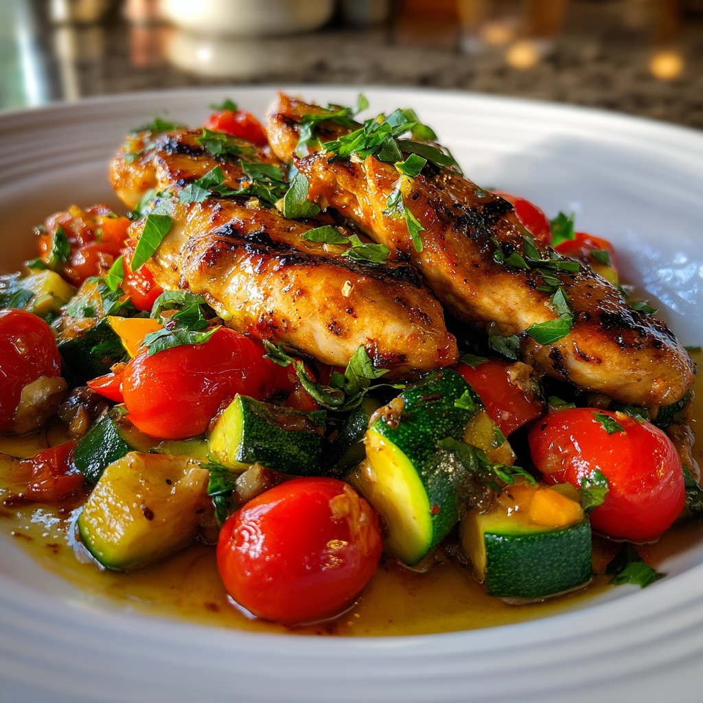 A light and refreshing chicken dinner recipe perfect for summer nights. This dish combines grilled chicken with a medley of seasonal vegetables and a zesty lemon dressing.