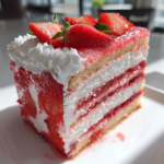 The Strawberry Jello Cake is a delightful dessert that combines the flavors of strawberry cake and jello into one visually stunning and delicious treat. This cake features alternating layers of fluffy strawberry-flavored cake and vibrant strawberry jello, creating a delightful contrast in both texture and flavor. It’s a trending dessert that has gained popularity for its unique combination of soft cake and wobbly jello, making it a hit at parties and gatherings.