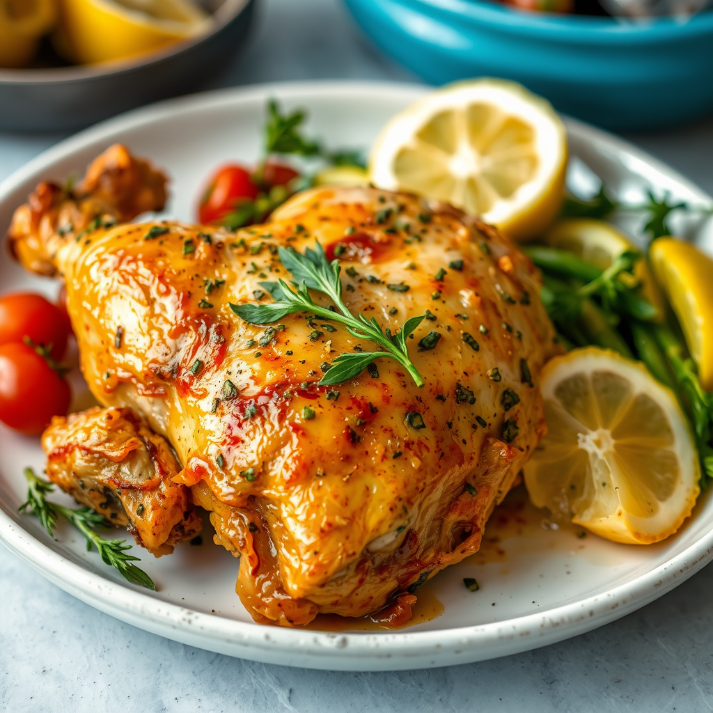 - Serve and enjoy your delightful Lemon Herb Roasted Chicken!